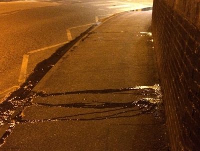 It was, as shown in the photograph (right), just a small steady trickle but one cannot help wondering if this was evidence of a potential weak spot and if the water had been higher and pressure, therefore, greater, would the retaining wall have held or would it have given way allowing the river to flow, unfettered, on to the road at Strand Quay, Winchelsea Road and other lower points?