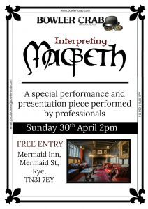 This is a one-off, free entry event entitled “Interpreting Macbeth” presented by local professional theatre company Bowler Crab Productions.