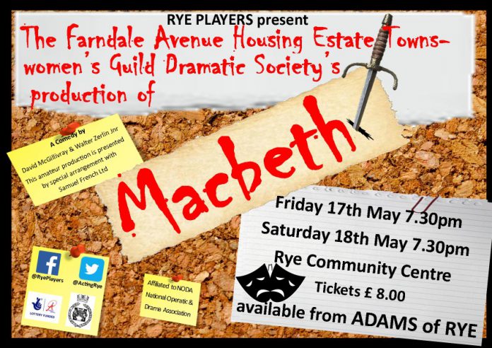 In the finest tradition of plays that go wrong, Rye Players brings you The Scottish Play as you have never seen it before. The very name M*cb*th is never uttered in a dressing room because disaster will surely follow.