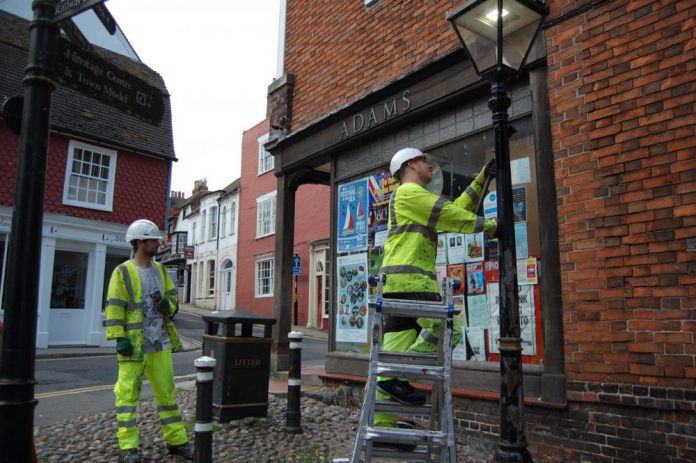 Contractors for East Sussex County Council have been busy painting the lamp posts in the centre of town. H and H Painters of March, Cambridgeshire have spent a week wielding black paint brushes in the Mint, the High Street and the streets around the Town Hall.