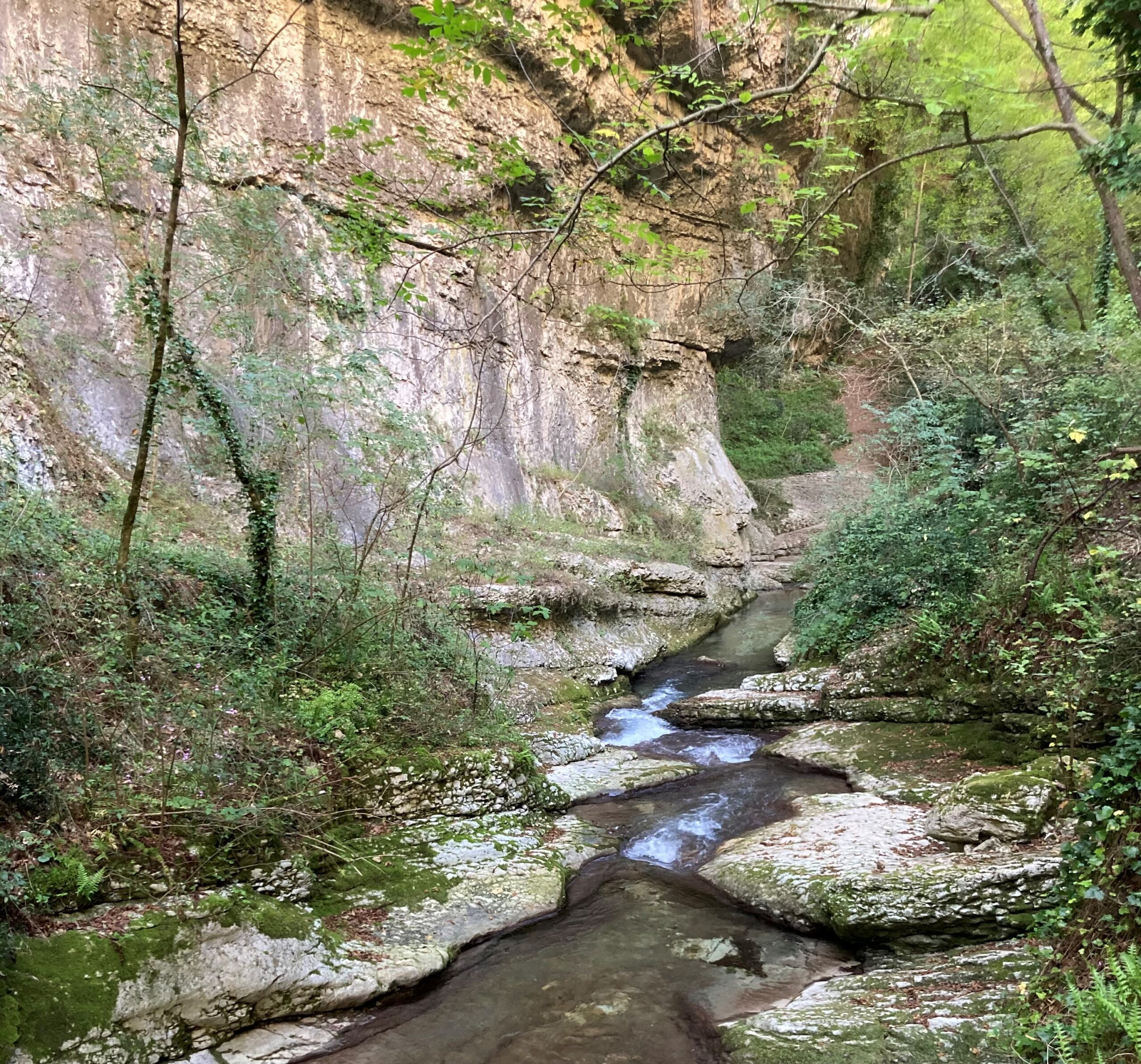 The next morning we were introduced to our big, strong bicycles and given a lesson on their gears. In great excitement, like a school outing, we set off in a single file up and down, down and up, and sometimes along, on very good empty roads with no potholes, arriving triumphant and ravenous for our lunches. These were always fabulous food, local cheeses, meats, breads, fruits, beers and wines. So thus was the rhythm of our days. Ride, eat / drink, ride, explore with wonderful background histories of abbeys, hermitages, and churches from Pierluigi.