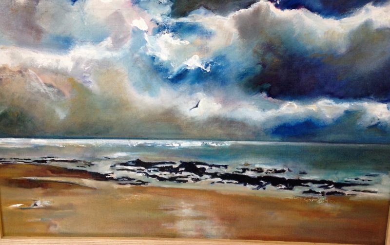 This year’s exhibition has 180 entries, in all types of media, watercolour, oils, acrylics and prints. It does not have ceramics or sculpture. Set out across two rooms in St Mary’s centre, it features works of different styles, which makes an absorbing collection of great variety.  On visiting on August 19, twelve works had already been purchased and there were a number of enthusiastic visitors, some questioning Priscilla Ryan, vice president and exhibitor, who was on the desk and the other members of the club who were helping her.