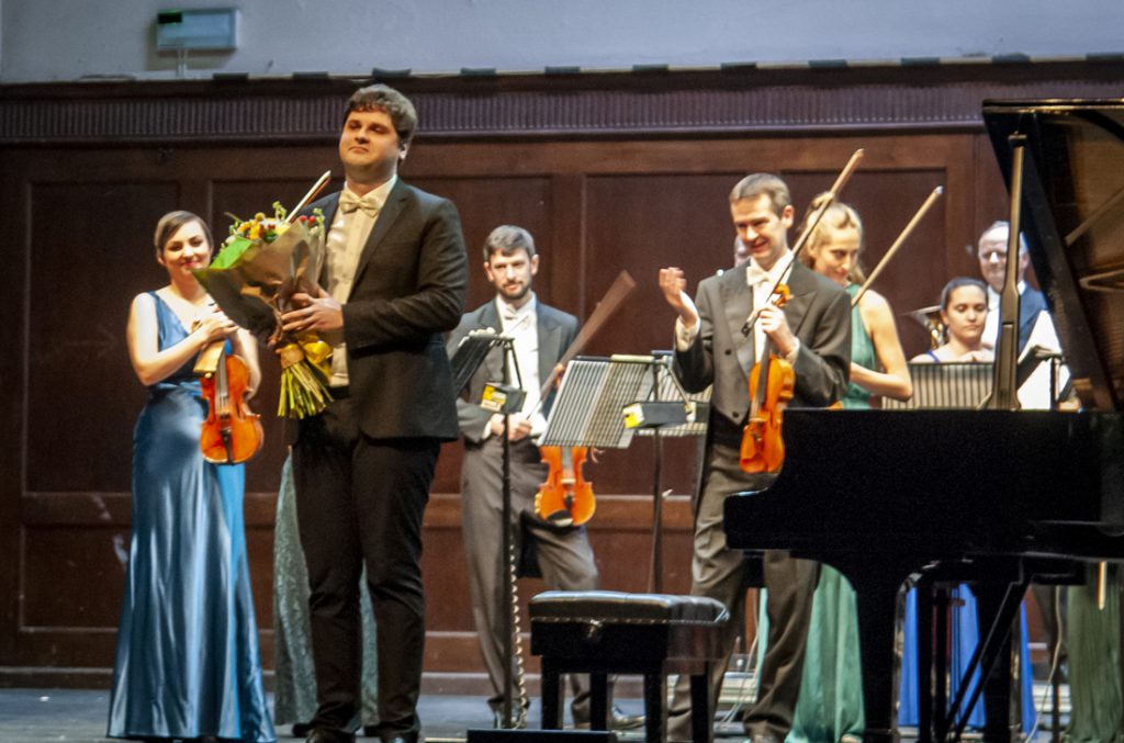An opening piece – Holst’s St Paul’s Suite – showed the string section of the orchestra, led and conducted by Darragh Morgan, in all its virtuosity, and was followed by Maxim Kinasov giving a beautifully modulated performance of Mozart’s popular piano concerto K.488. Joined now by brass and woodwind, the orchestra provided the perfect backdrop for the pianist who demonstrated perfectly his understanding and feeling for the music. That the audience appreciated his undoubted talent was shown in the ovation he received as the final notes died away.