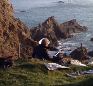 People were complimentary and appreciated Sally’s paintings as well as the pottery by Effie Gibson (below) and sculptures from other artists, all of which brought about several sales – a busy but enjoyable first day back.