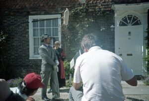 As the cameras first rolled you could have heard a pin drop. We had to be careful not to stand too close to the action, as we might be seen reflected in the windows of the houses opposite. I remember one fellow in the watching crowd accidentally jangled some change in his trouser pocket and the director yelled “Cut!”. The man looked a little embarrassed. After that, I hardly dared to breathe! Neither did he! I remained transfixed and rooted to the hot cobblestones – fascinated as the scene unfolded and magically rolled back 50 years to the elegance of 1930s Rye.