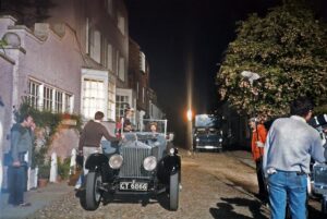 Later that evening, tipped off by a crew member, I returned to Rye and witnessed the night filming of the last scene of the final episode, where Elizabeth and Benjy leave “Mallards House” (Swan House Cottage) after the embarrassing encounter with the Duchess of Sheffield (the wonderful Irene Handl who was not present unfortunately).