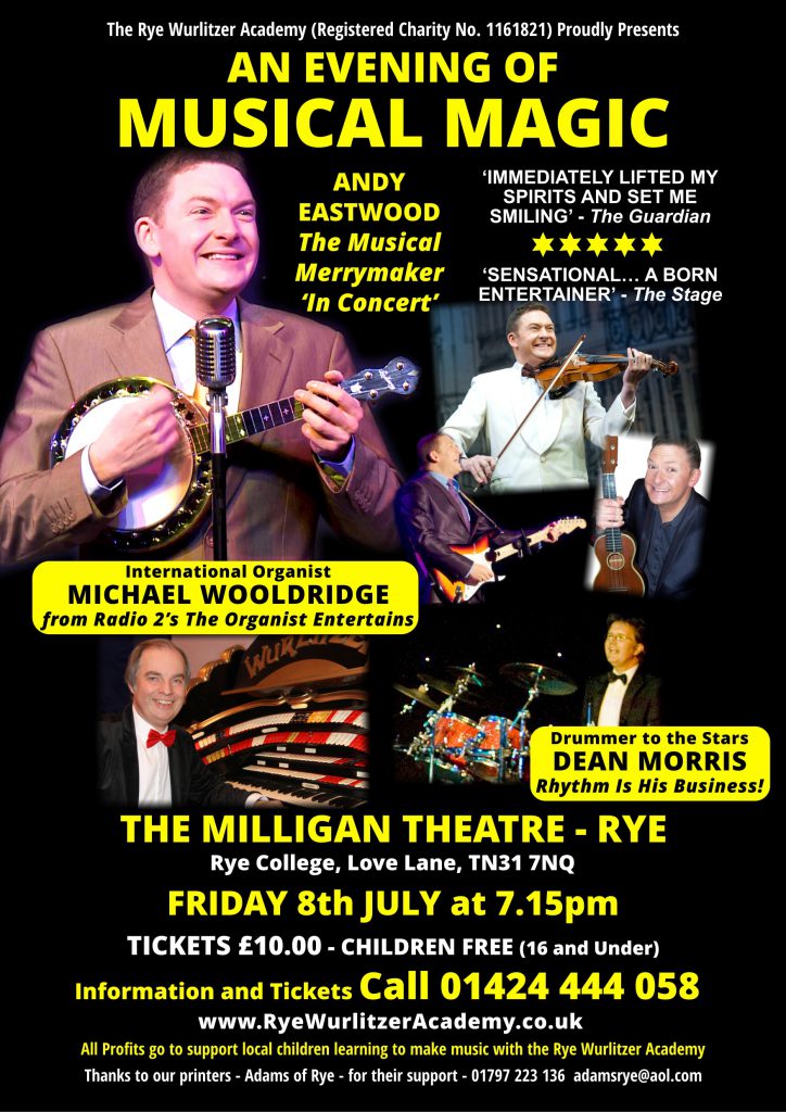 Andy supported the late Sir Ken Dodd for many years and still travels all over the country to perform. Let’s give him a great welcome in Rye.