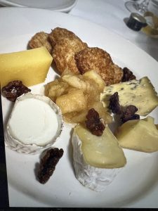 You can probably tell that I politely refused dessert but regret that decision. I missed out on poached peaches, white chocolate mousse with raspberry and pistachio… and other amazing-sounding choices. I will try them all when I return…