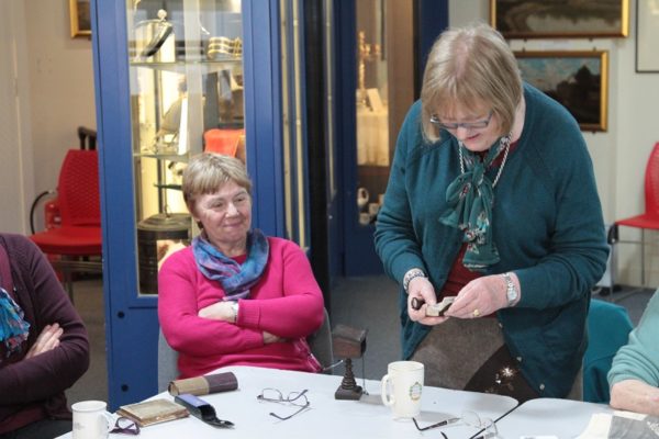 The afternoon was well supported – 17 people attended and bought along a variety of curiosities mainly associated with the Queen. Linden Thomas the museum curator showed a small selection from the museum’s collection, with a royal connection, including a jigsaw of the queen at her coronation and various medals and plates.