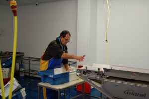 Chapman’s have 12 boats under contract based in Rye and Hastings, consisting of “netters” and trawlers, representing the different methods of catching fish. It regularly processes seven tonnes of fish of various species, most of which is shipped to Zeebrugge for the Belgian market.