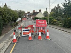 2. Yes, can confirm a nightmare in Dumbwomans Lane. Stench of burned-out clutch fills the air. We see some very stressed drivers. Despite signage to say ‘Unsuitable for HGVs’ – lorries cause most concern. Our overhead cabled power supply poles are right on the lane edge. Will be very relieved when it’s all finished. Best wishes to all.