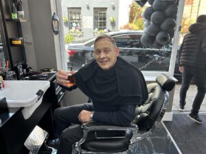 The newly converted store is bright, with a barber’s pole outside and four chairs with mirrors for customers to watch during a service that includes more than a quick cut or shave. A refreshing facial and hot towel treatment are on offer, along with hot wax.