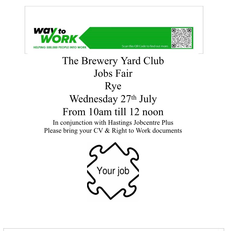 A sign of the times when a jobs fair is held in a pub, I remember back in the 60’s when a job fair in Rye filled the school hall in New Road.