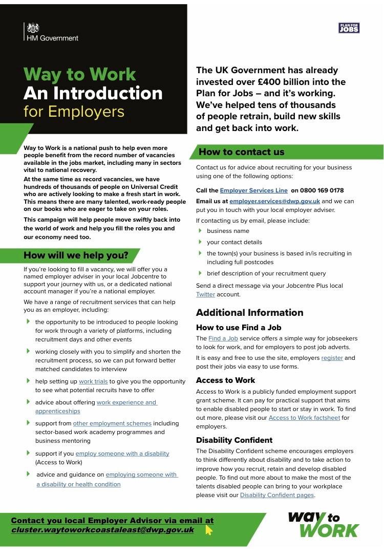 For employers: the DWP will start to invite those whom they know in Rye, particularly in the hospitality sector who are really struggling at present. They collate CVs for the businesses who are too busy or unable to attend and, for those employers who are able to come along, the DWP will facilitate “speed dating” style interviews at the jobs fair.