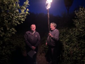 Rye’s beacon on Udimore Road was lit at 9:30pm on Thursday, May 8 to end the day’s events marking the 80th anniversary of VE Day. For deputy mayor Chris Hoggart, who set the beacon alight, it was also a chance to remember his father’s wartime service.