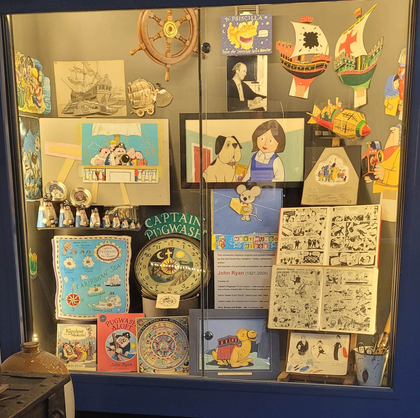 The display dedicated to John Ryan – artist, cartoonist, author and animator – has been chosen and designed by Isabel Ryan, with lots of exciting new Captain Pugwash objects including actual moving illustrations for animating the Captain Pugwash TV series, artwork from Mary, Mungo and Midge TV programmes and comic strips.