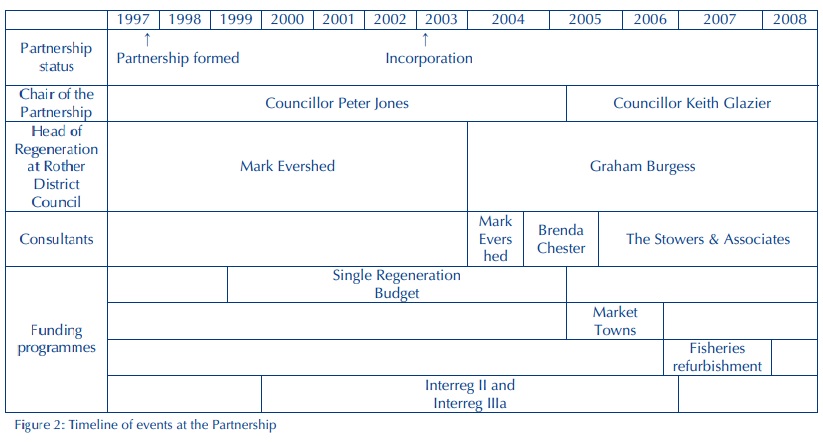 The Rye Partnership was established in 1996 to ‘bring together key stakeholders to develop a local community response to the socio-economic problems prevalent in the area.’ In its early days the Rye Partnership was successful in obtaining external funding from SEEDA (the South East Economic Development Agency, one of nine development agencies that covered the UK at the time) and EU funding to help with regeneration efforts and to boost local skills and the tourist economy. In addition, the Partnership received annual financial support from Rother District Council.