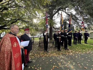 St Mary’s, Rye was packed on Sunday with worshippers wishing to remember and pay their respects. The service was conducted by the rector, Revd Paul White and Linda Estrada. There was a parade beforehand of services, civil and youth organisations proudly carrying their standards.