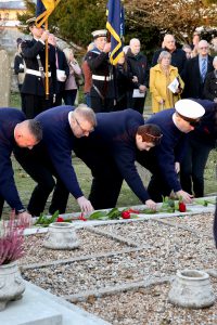 After the service is completed, everyone moves outside to the lifeboat memorial in which the sixteen recovered crew-men are buried: John Stanley Head was never found. A single red rose laid on each name by current members of RNLI Rye Harbour lifeboat station acknowledges the continuing tradition of service and sacrifice. In the silence after the plaintive notes of the Last Post die away there is time for reflection and gratitude.