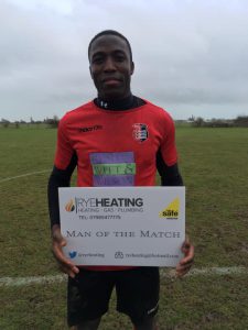 Rye Heating’s Man Of The Match award went to Georges Gouet and the game was sponsored by Pete the Pane Window Cleaning.