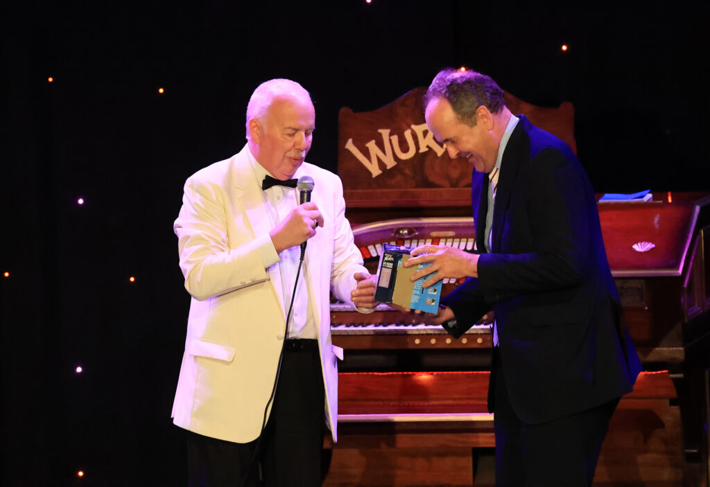 “I’ve lived on the Kent Coast now for sixty-four years and in Lydd for the last twenty-five. I have visited the Wurlitzer Concerts and shows many times. I’ve known their favourite visiting organist John Mann for a long time. Michael Wooldridge is also a good friend, as he’s also the editor of Piers Magazine (Seaside Pier Preservation Society) of which I’ve been a member for many years. I’ve also been in showbusiness all my life… and all of these special variety shows have acts I know very well. Richard Moore is an amazing person, bringing the organ back to life and organising all these wonderful shows and concerts.