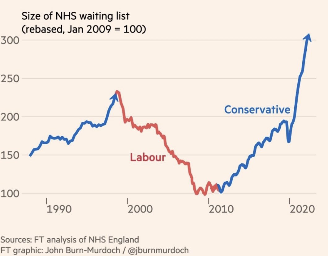 My personal feeling has been that many but not all Conservative politicians and thus the Conservative governments we have had for 12+ years are ambivalent about a national health service. They seem to have no problem with private healthcare but offering a high quality national service supported fully by the government is much less of a priority. A country cannot function well with a health service in crisis. This should not be about the party in power but a shared consensus across the political spectrum. If we don’t demand more from this or future governments we are all losers and there will be unnecessary suffering and a higher death toll.