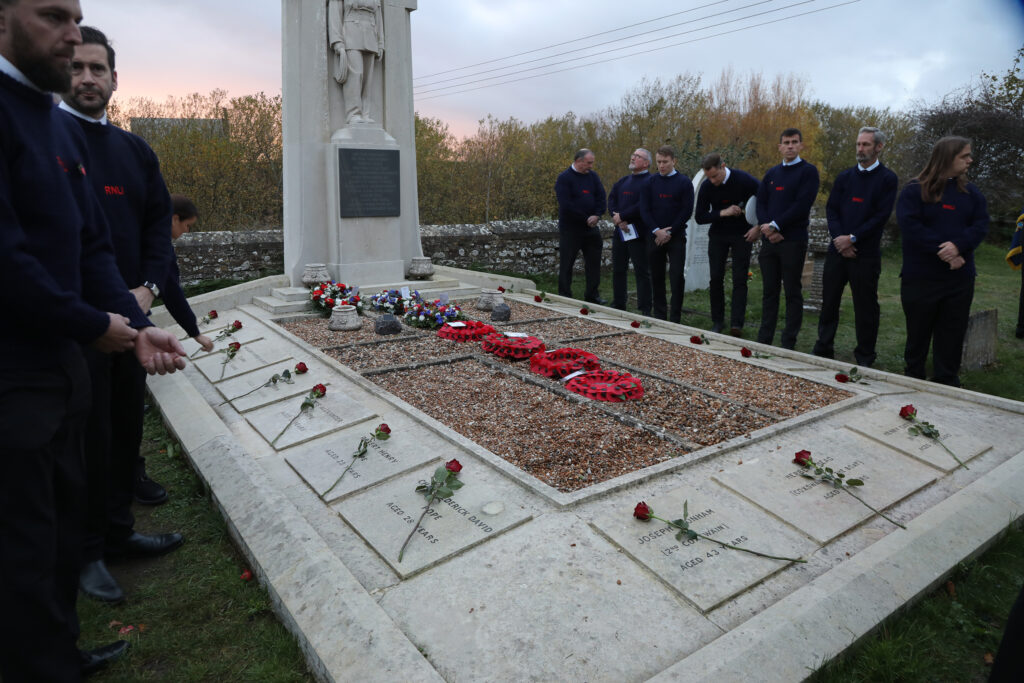 After the service is completed, everyone moves outside to the lifeboat memorial in which the sixteen recovered crew-men are buried: John Stanley Head was never found. A single red rose laid on each name by current members of RNLI Rye Harbour lifeboat station acknowledges the continuing tradition of service and sacrifice. In the silence there is time for reflection and gratitude.