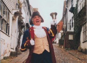 Sadly, February has marked the loss of one of Rye’s greatest voices, in retired town crier, Rex Swain. Rex was crier for 19 years and a regular feature of the social landscape, making appearances at a huge variety of town events as well as attending many, many weddings during his tenure. He will be fondly remembered by all for his stories and poetry, and his great sense of humour. Rex was made an honorary freeman of the town in 2018 and his time as town crier is marked with a plaque in the garden of the town hall.