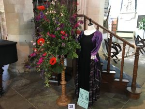 Sponsored by Rye Town Council, Jempson’s of Peasmarsh and St Anthony of Padua Church, the theme was “In Which We Serve”. In line with this, voluntary organisations were asked to contribute floral displays, making reference to how they served the local community. There were 28 exhibitors, so only a taster can be given here, including the Flower Guild itself, which had contributed a very interesting piece in the programme as well, describing the four colours used in church, white or gold, purple, red and green, and their symbolism. There was a display of the special clothing, robes and vestments in use during church services, in front of the altar.