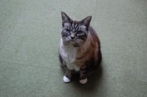 For Mimi is an honourable cat, more like a dog in her habits. She sits in the hall and walks to greet us as we come in the door. She is allowed to sleep on her mistress’s bed (something I don’t altogether approve of). She is loyal and hard-working after her fashion, not pleasure-seeking like feather-headed will o’ the wisp Milly.