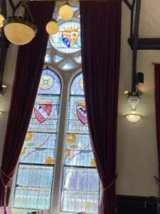 I was fortunate enough to be invited by my daughter-in-law, Hayley, a New Zealand national, to come as one of her two guests (the other being her husband). Not having the slightest idea what to expect, I duly found my way to the correct part of the town hall, the register office, to find myself and my family in a very grand Victorian building. As I climbed the imposing flight of stairs to the first floor, we were ushered into an enormous, beautifully kept space and who should I see but Ryer Chris Emson, leading the Mother’s Union in providing the refreshments! We were to see more of Chris at the end of the ceremony.