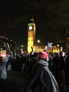 On February 20 a group of pussies made it to the demonstration in Parliament Square, organised to coincide with the debate in the House of Commons about the proposed visit of US president Donald Trump to the UK.