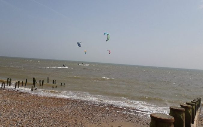 Despite the spectacular storm on Saturday night, summer seems to have started at last writes Heidi Foster. The beauty of Winchelsea Beach is that it is peaceful and being a shingle beach, it does not have the crowds of people who flock to Camber Sands instead, only a mile or so away. It was lovely to watch the kite surfers, manoeuvering with expertise and playing tag. Photo: Heidi Foster
