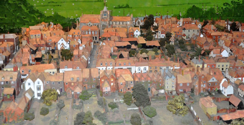 Last Saturday, August 10, was going to be a quiet day in Rye’s Heritage Centre on the windswept Strand Quay until a party of Russian schoolchildren dropped in (unexpectedly) and surrounded the town – the model of historic Rye shown above.