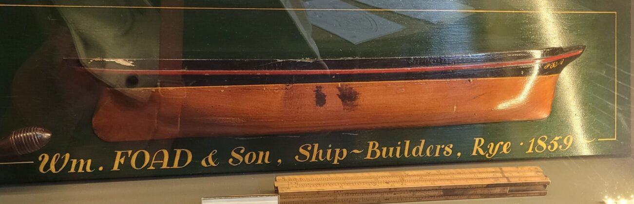 “Emily Clark (Gammon) was my great grandmother, and I can remember the model hanging on the wall in her guest bedroom. George Gammon (my great, great grandfather) was a mariner and later a shipwright working for the shipbuilders in Rock Channel. My grandma said when she was a child she would go and watch him making the masts in the mast shed at the end of St Margaret’s Terrace, and probably in his spare time he would help his father-in-law, Owen Croucher, with plying the ferry from Ferry Cottage across the river Rother.”