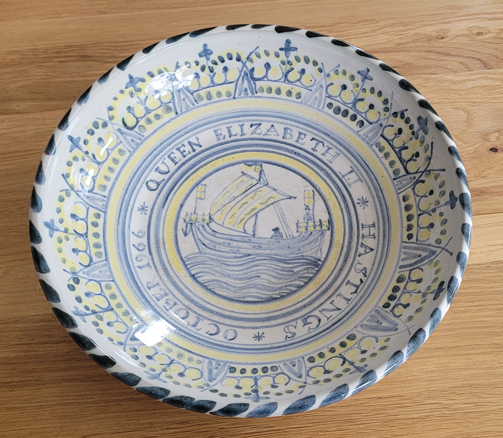 The Rye Pottery Queen Elizabeth II 900th anniversary of the Battle of Hastings commemorative plate of 1966