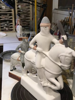 In 1978, Wally Cole retired and Tarquin, along with his wife Biddy, took over running the pottery overseeing all areas of the creative process and designing many of the pieces. The impact of the miners’ strike and competition from overseas manufactured tableware meant that the Coles had to change direction, producing a range of collectable figures and animals. Characters from the Canterbury Tales designed by Tony Bennett continue to be produced along with his 1066 Bayeux Tapestry, Battle of Hastings series. Other designers, past and present, include Neal French, Chris O’Donoghue, Gordon Davies, Joan de Bethel and Wendy Johnson. In addition to running the pottery, Tarquin had already established his own company in the early 1960s, Rye Tiles, and the present-day pottery still produces these using many of his original designs.