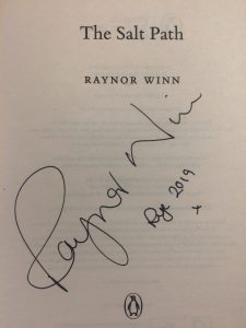 The talk was originally scheduled for September but Raynor broke her toe and couldn’t travel, which is ironic because her book, The Salt Path, catalogues her 630 mile walk along the South West Coast Path.