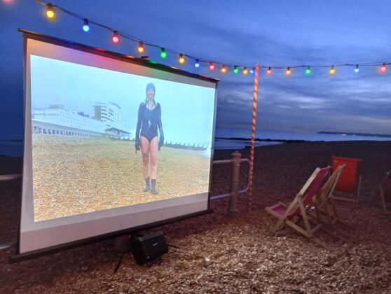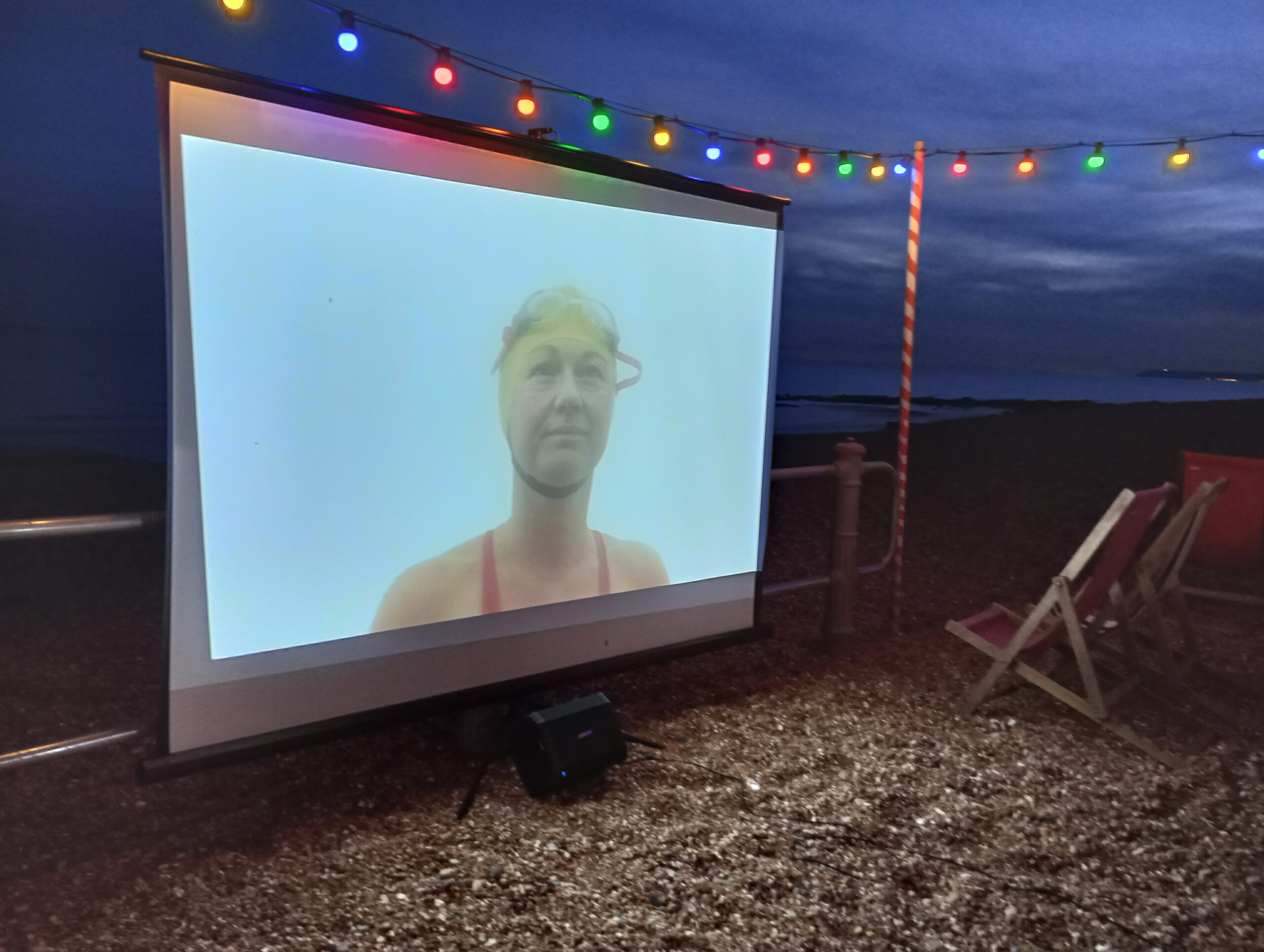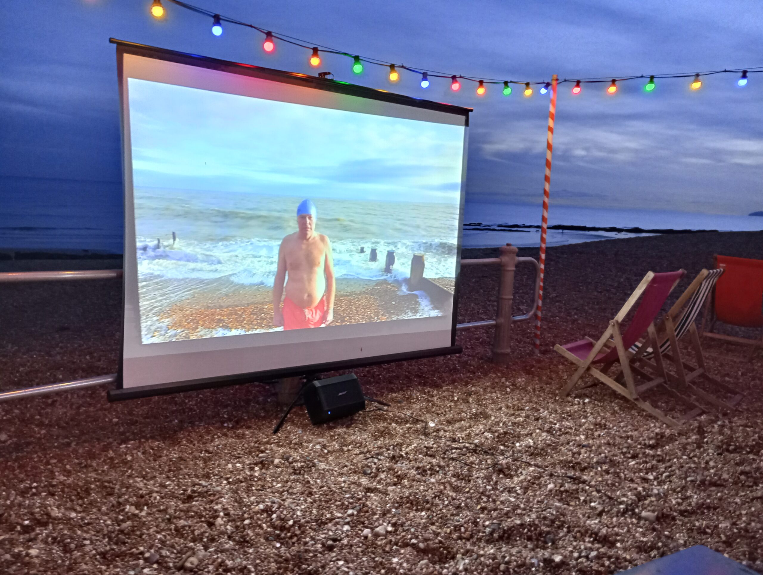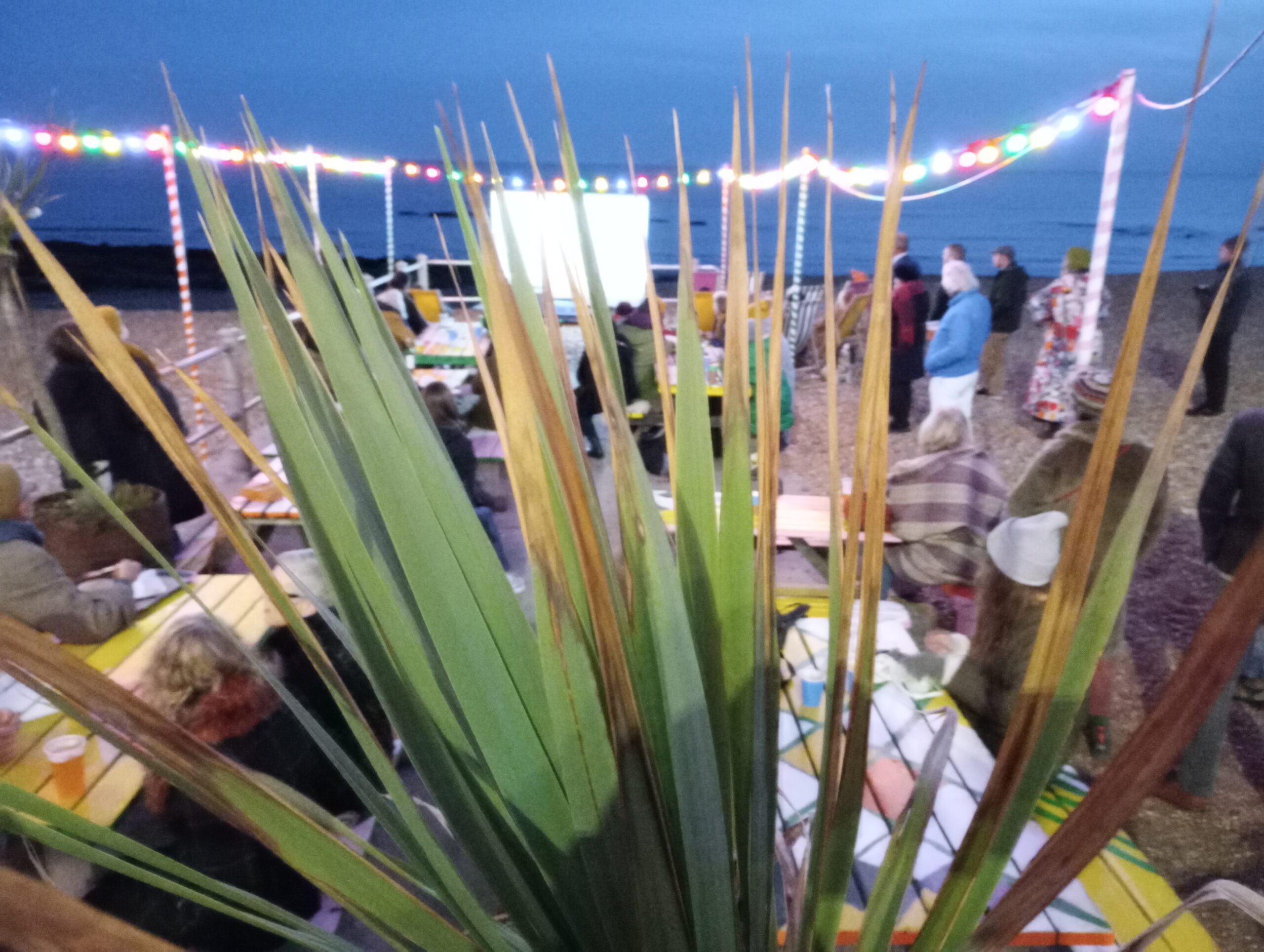 It was an interesting photographic experiment for Malcolm and the audience enjoyed it even though it was getting a bit chilly as it got late. Some were prepared, having brought warm clothes and blankets. Being a beautiful setting, right on the shingle, The Goat Ledge provided food and drink in their seating area, a very atmospheric environment.