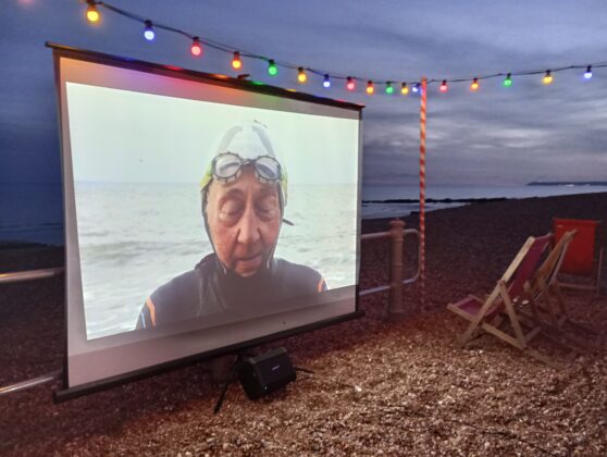 Over years he has seen various individual swimmers in the water in all weathers and decided to document some of them, calling it Swimming Through, a Communal film portraying the members from local groups including the Blue Tits, Groin 42 and Chill on the Beach.