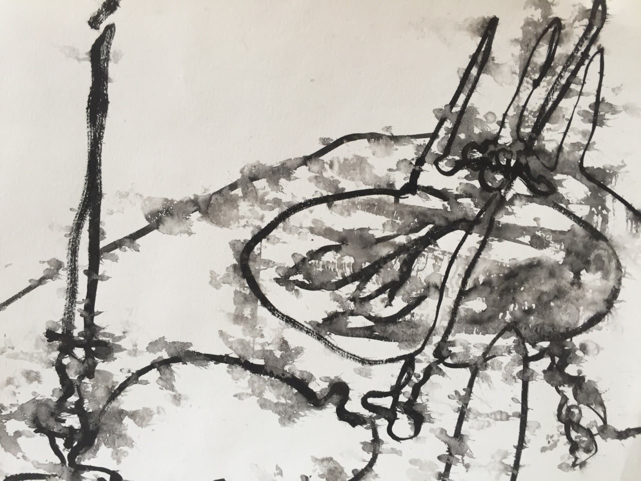 Luke Hannam hosted an outside drawing group in an open sided barn at ‘Tillingham Wines’, we continued drawing through a storm one evening with rain splattered ink and soggy paper. Nick Archer created ‘Art Classes in Rye’ by Zoom, printing without a press was my favourite block.
