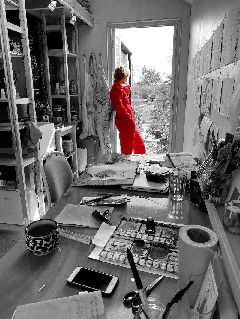 I am fortunate that I have a studio next to my house to work in. I don’t want to imagine what it would have been like if I hadn’t had this. Construction of the studio started 18 months ago, paused in lockdown one, but was finished before two. For me lockdown has presented a chunk of time in which to create and am conscious of trying not to waste that. I aim to draw, paint or scribble something every day.