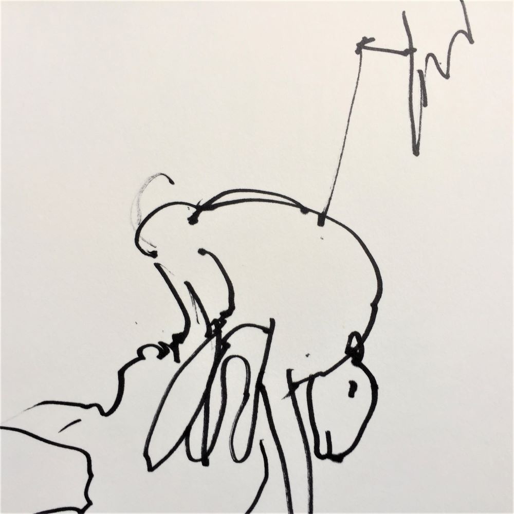 I have drawn my sons moulded into chairs and sofas. We’ve watched a lot of ‘House’, a US medical drama with Hugh Laurie on Netflix, we guess how long it will be before the patient is given a lumbar puncture! There’s comfort in repetition in lockdown.