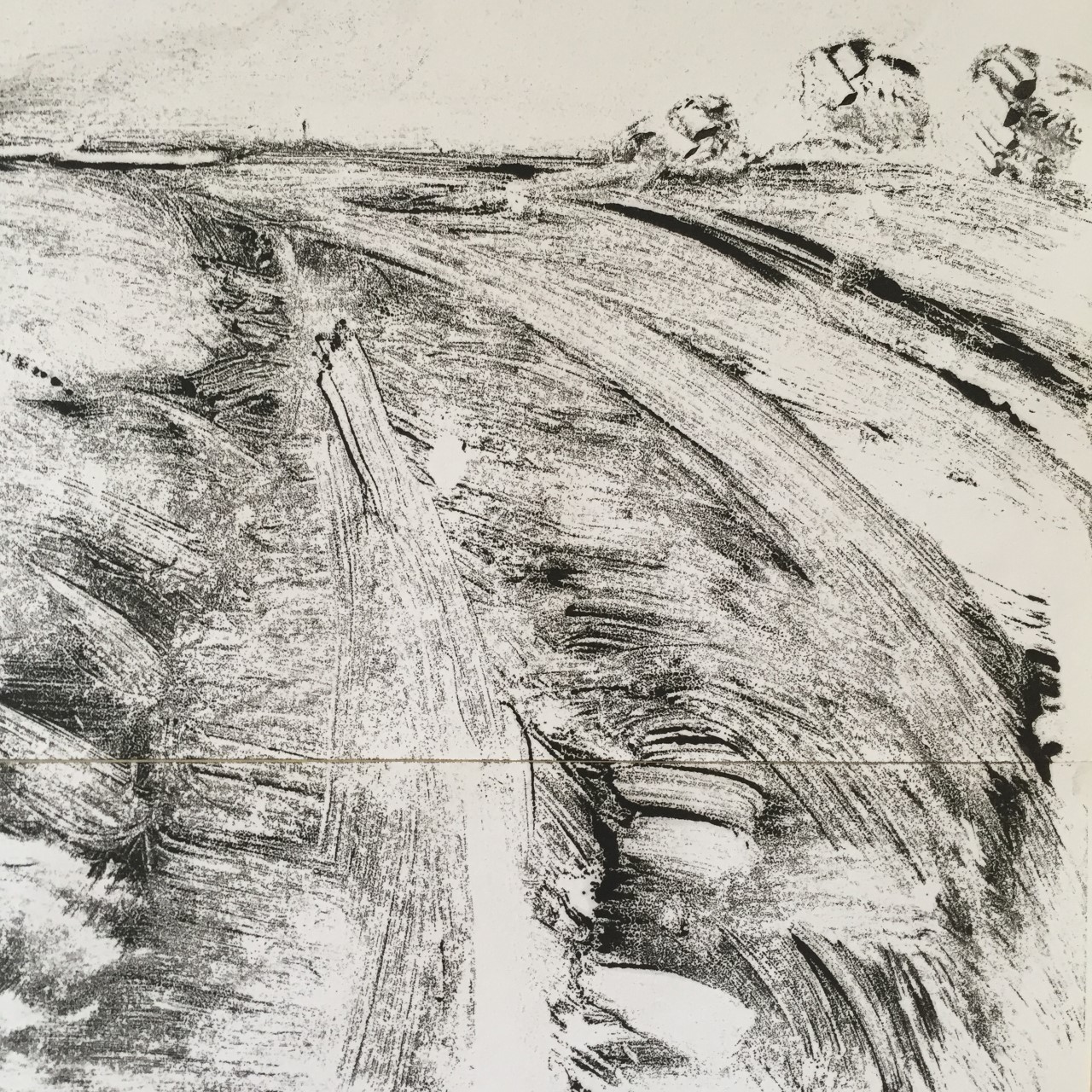 “Nick Archer’s online classes artclassesinrye. It was a revelation to discover printing without a press, mono-printing en plein air is quite something else, dealing with the elements and making sure ink is dry on the paper before packing up .