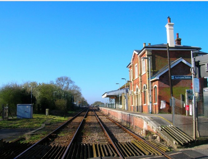 The modern world came to Appledore in 1851, when the railway station was built. In 1881 a further line was built to connect with Lydd and New Romney. That line closed to passenger traffic in 1967, although it is still available for trains transporting goods to and from Dungeness nuclear power station. The station is on the Marshlink line and train services are currently supplied by Southern. Appledore station, (now listed Grade II) isn’t actually in Appledore. Rather, it is almost two miles away in Kenardington.