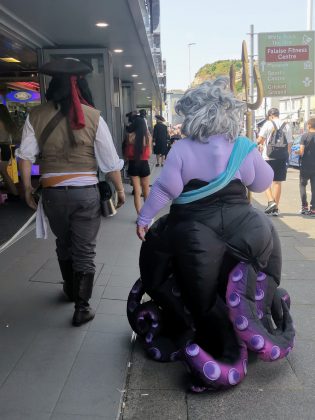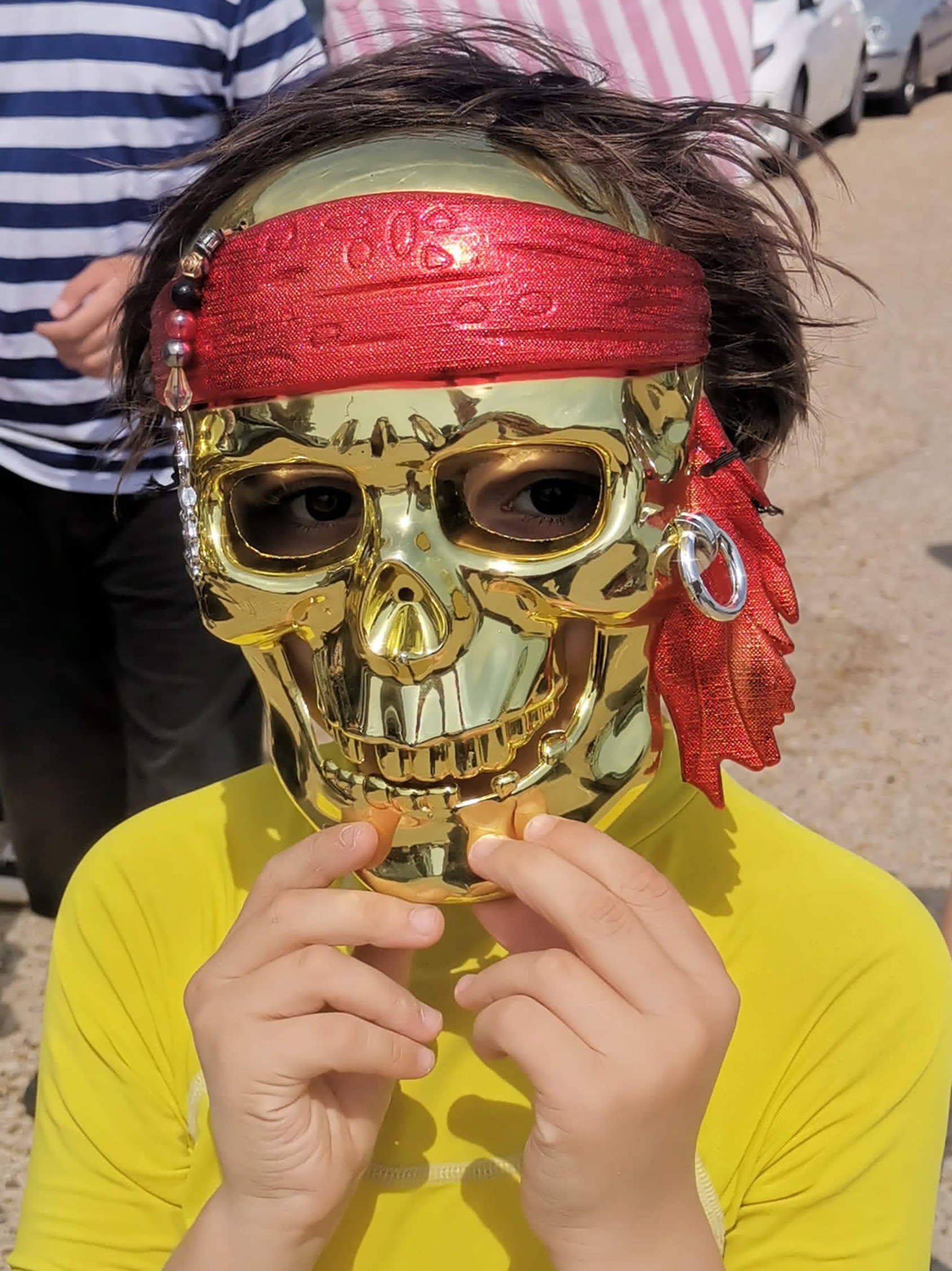 Just walking in the streets was exciting. We could hear people playing music live (saxophone player, drumming bands) and see people with brilliant costumes. There were many Captain Jack Sparrows around too. It was very colourful and loud! By complete luck, we came across the pirates parade at the end and were so happy to see the Ryebellion as we love their music. We loved the little dog pirates and the baby pirate too!