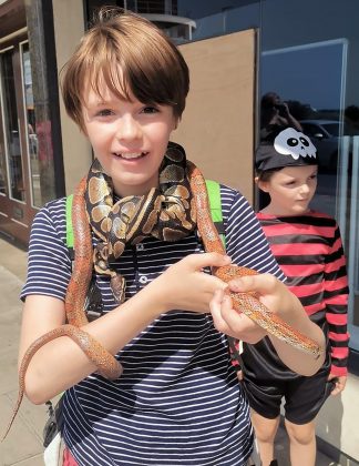 Luca: I liked holding the snake, and the thrill of the roller coaster, and the pirates parade was loud and boisterous and there were little doggies in carts with pirate hats, really cute.