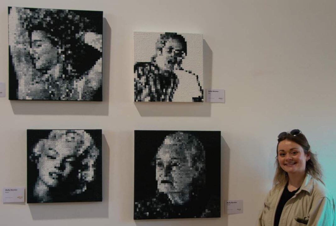 Molly says: “Using a restrictive palette of black and white, my work challenges our perception, through shades of grey, to the diversity and reality of who we really are.” Throughout her school and university life, Molly has always had an interest and focus on the human form and identity. Now she paints at home in her studio, still exploring these recurring themes to create a mixture of ‘human landscapes and distorted portraits’.