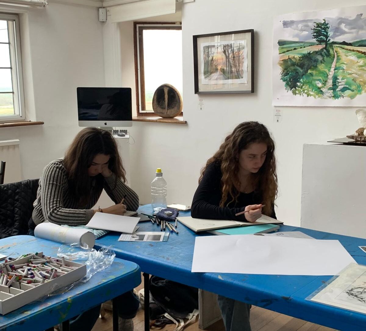As part of the introduction, artist and illustrator Polly Horner talked about her work and was on hand throughout the day to offer advice and share her experiences. The students were creating scenes for illustrations working outside and then went back into the gallery to add detail.