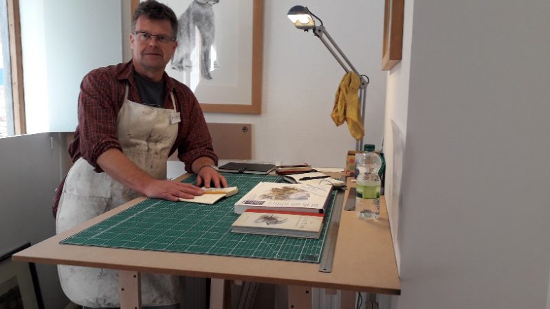 The first Artist in Residence is Will Taylor, an artist and print maker based in Rye who will be trialling the scheme until December 2019. Visitors will be able to discuss his art or any pictures in the exhibition. The gallery welcomes feedback, both from artists and the public, on original ideas for the scheme, which hopefully will inspire and engage people in the gallery and in art itself. The work space is compact but there is an opportunity to also work in studio 6 at the top of the building where an easel is installed.